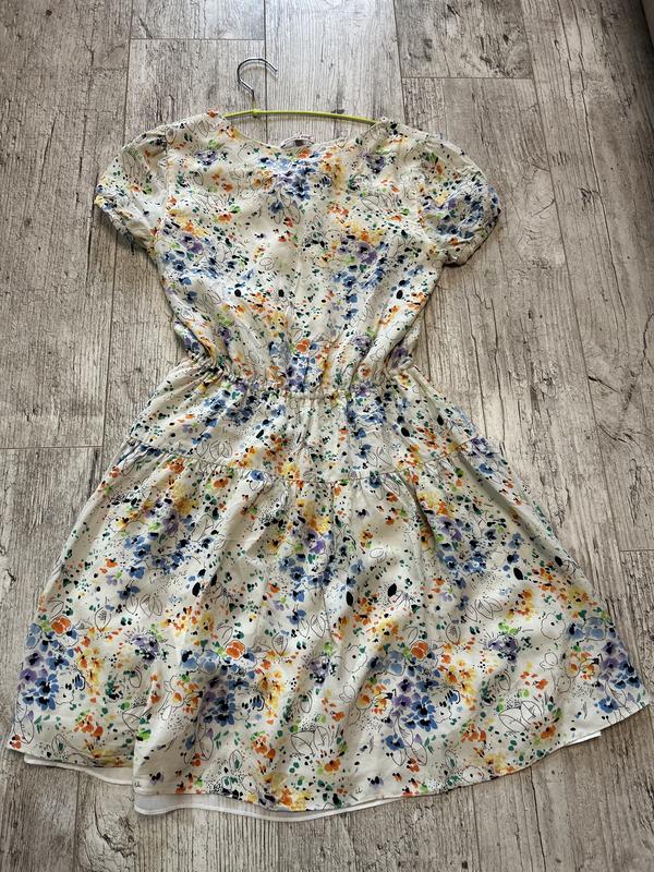 Красивое платье размера S. Очень красивое, цветное, впечатляющее. Легкая. Выше колени