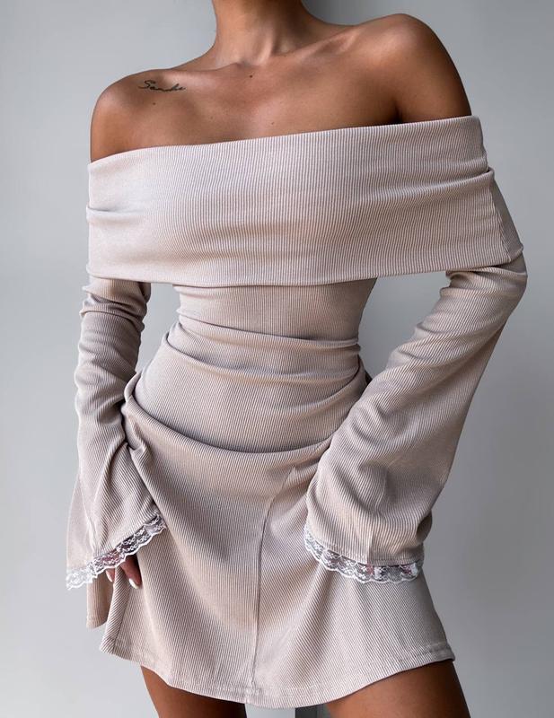 Сукня Модель: 302 Розмір: 42-44, 46-48 Колір: чорний, бежевий, червоний Тканина: рубчик Туреччина Сукня з відкритими плечима😍Витончений фасон, силуєтні вірізи, рукава з мереживом. Ідеальний варіант для яскравої осені❤️🔥 42/44 Об'єм грудей 82-88 см Об'єм талії 64-70 см 46/48 Об'єм грудей 90-96 см Об'єм талії 70-76 см Довжина сукні 78 см Довжина рукава 57 см