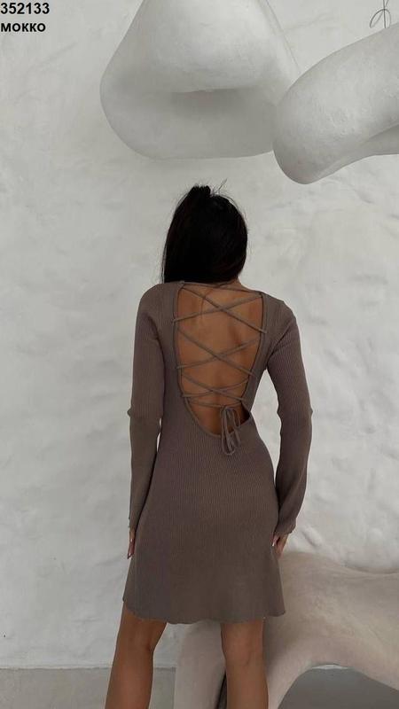 Красивое платье в рубчик с клеш рукавами/платье с шнуровкой на спинке