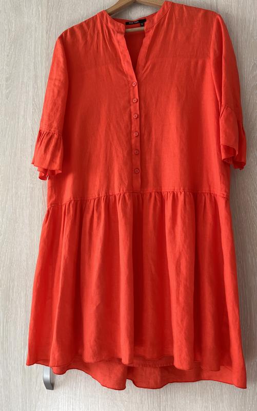 Яскрава сукня. Размер указан 36 ( ляже свободно) красиво пойдет также на 38. Платье на подкладке. Ткань красиво держит форму. Этикетка со сбором срезанный, визуально хлопок. Стан как новая.