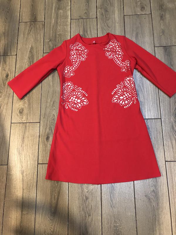 Очень красивое праздничное яркое платье! Длина 78 см рукав 3/4 - 40 см, бедра 45 см! Тканина тягнеться ! Спереди подкладка! Дуже ефектна ! ( нюанс - немного есть катышков на внутренней части рукава )!