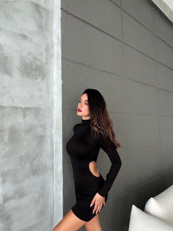 ☆☆☆New collection☆☆☆ Платье 🩶 🔝 с привлекательными вырезами и цепочкой (Турция) фабричное качество 🔥 тканина трикотаж рубчик размер s m l длина 84 см цвет: черный
