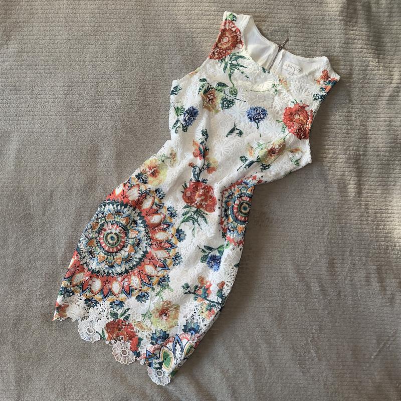 Сукня в ідеальному стані, тільки по бірці видно, що її прали, трохи вицвіла, на фото видно. Дуже гарне вʼязане мереживо. Кольори насичені, як на моїх фото. Довжина 89 см. Плечі 32 см. ПОГ 44 см. ПОТ 37 см. ПОБ 43 см.