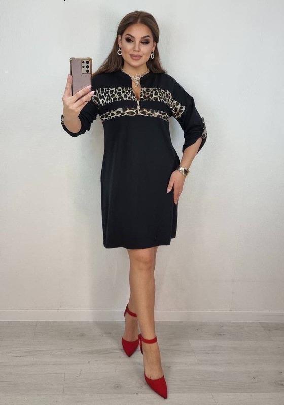 ✅✅✅НОВИНКА ✅✅✅ Платье Модель 989VL Размеры : 42-46,48-50,52-54,56-58,60-62 Ткань : дайвинг Цвет: черный Платье -туника с интересным кроем, свободный крой, леопардовые вставки, рабочая молния на груди, длинный рукав с патиком на пуговице, что дает возможность регулировать длину рукава. Свободный силуэт можно регулировать поясом и подчеркнуть талию, по бокам два кармана. Параметры модели-нормы ОГ90, ОТ68, ОБ96, рост 170см, на ней одет размер 42-46; параметры модели-балталл ОГ112, ОТ88, ОБ112, рост 165см, на ней одет 52-54 Замеры изделия: Размер 42-46: Объем груди 106 Объем талии 100 Объем бёдер 102 Длина рукава от шва 43см Длина 86см Размер 48-50: Объем груди 120 Объем талии 110 Объем бёдер 112 Длина рукава от шва 43см Длина 90см Размер 52-54: Объем груди 126 Объем талии 116 Объем бёдер 118 Длина рукава от шва 44см Длина 92см Размер 56-58: Объем груди 132 Объем талии 122 Объем бёдер 124 Длина рукава от шва 45см Длина 96см Размер 60-62: Объем груди 142 Объем талии 132 Объем бёдер 136 Длина рукава от шва 46см Длина 100см