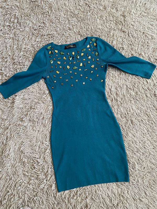 Красивое платье с отделкой искусственными камушками в красивом состоянии.Размер 170-80-88/40.Склад вискоза 80% эластан 20%