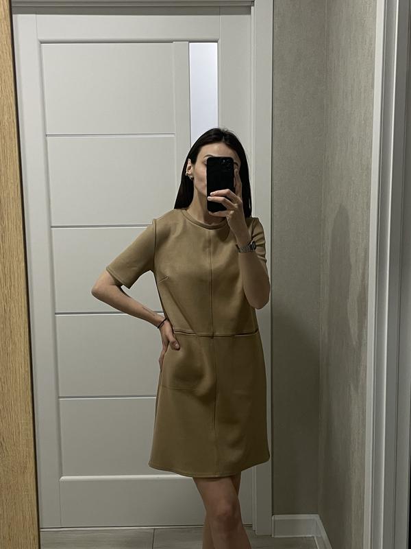 Платье Zara в размере S, под замш. Стан идеален, дефектов нет. Длина 82 см, плечи 37 см, полуобхват бедер 47 см. Желаю приятных и удачных покупок ;)