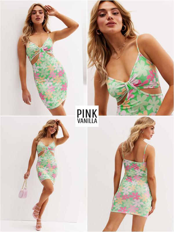 Облегающее мини-платье с разрезами в цветочный принт Pink Vanilla Размер м Состояние идеальное Замеры: От подмышки к подмышке 41 Пот 37,5 Поб 48 Длина 82