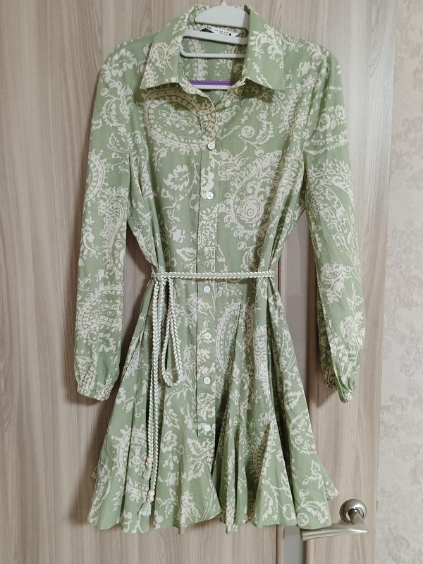 Новое платье, размер м, приобретало себе, но не взорвалось по размеру. Ткань приятная к телу, натуральная, очень эффектно смотрится.