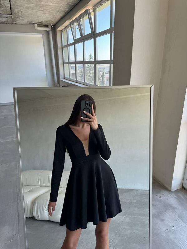 Платье мини короткая женская дайвинг с длинными рукавами черная платье праздничная новогод...