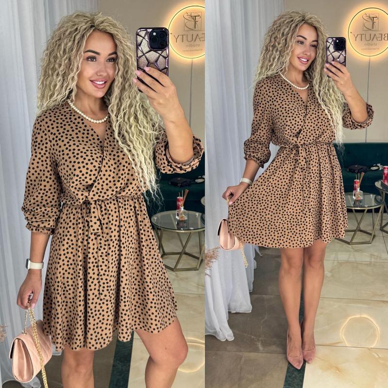 ❤️РОЗПРОДАЖ 580 ГРН❤️ Платье Мод 224 Тканина шовковистий софт Размеры 42-44, 46-48,50-52 Платье с имитацией запаха,талия и рукав на резинке, пояс в комплекте. карри