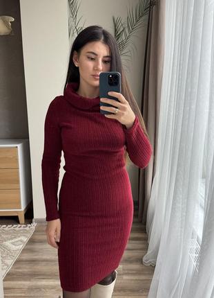 Жіноча сукня, актуального зараз бордового кольору в розмірі S. Одягнена на ріст 160 см і параметри 90-70-94, гарно тягнеться.