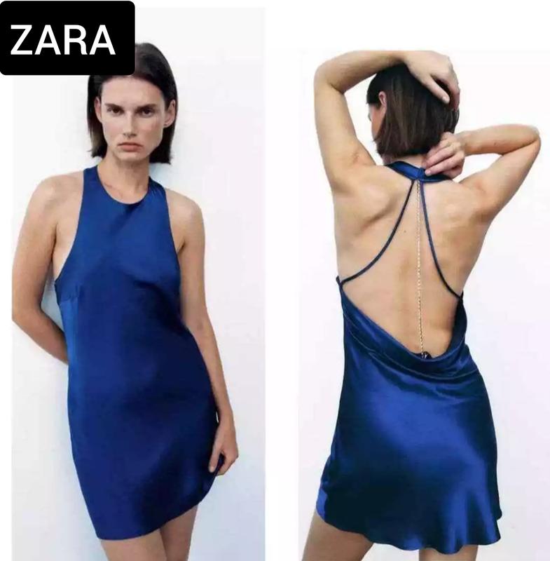 Платье женское синие комбинация под шелк с камнями от бренда zara m
