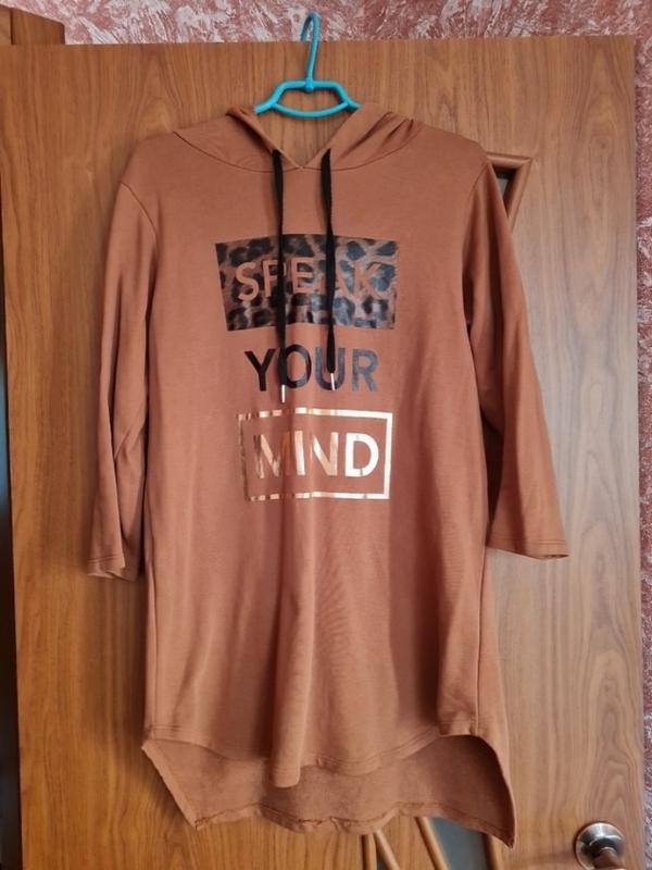 В спортивном стиле,оверсайз.З зади немного удлиненное.Хорох качества,производство Турции. Размер S-M.