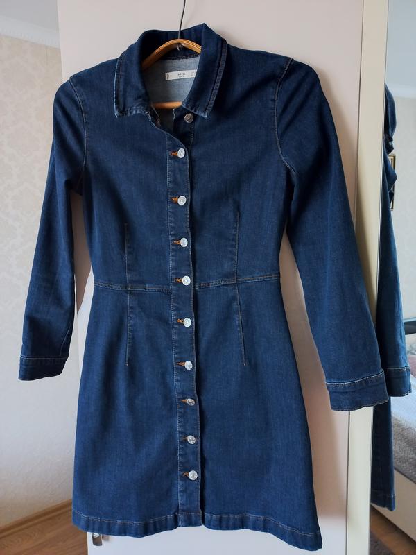 Джинсовая плання в идеальном состоянии, от Mango. Размер С. Седает по фигуре к низу чуточку клеш. Цвет глубокий темно-синий, очень стильный, камера не перевала оттенок.