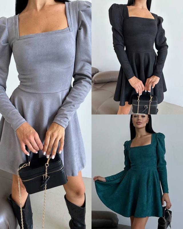 Сукня Мод.911 odf Ткань:замш на дайвинге Цвет: черный, зеленый, свет серый Размер: 42-44, 46-48, 50-52, 54-56 Пышная юбка-солнцеш, стильный пример пышный рукав Замеры в спокойном состоянии Растяжимость 6-8см 42-44 размер Ог 80 От 66 Длина 88 Длина рукава 64 46-48 размер Ог 90 От 76 Длина 90 Длина рукава 64 50-52 размер Ог 100 От 86 Длина 100 Длина рукава 64 54-56 размер Ог 108 От 94 Длина 100 Длина рукава 64 🛒 ОТПРАВКА в течение 2-4 дней!️ ‼️БЕЗОПАСНОСТЬЮ ОПЛАТОЮ НЕ ОТПРАВЛЯЕМ