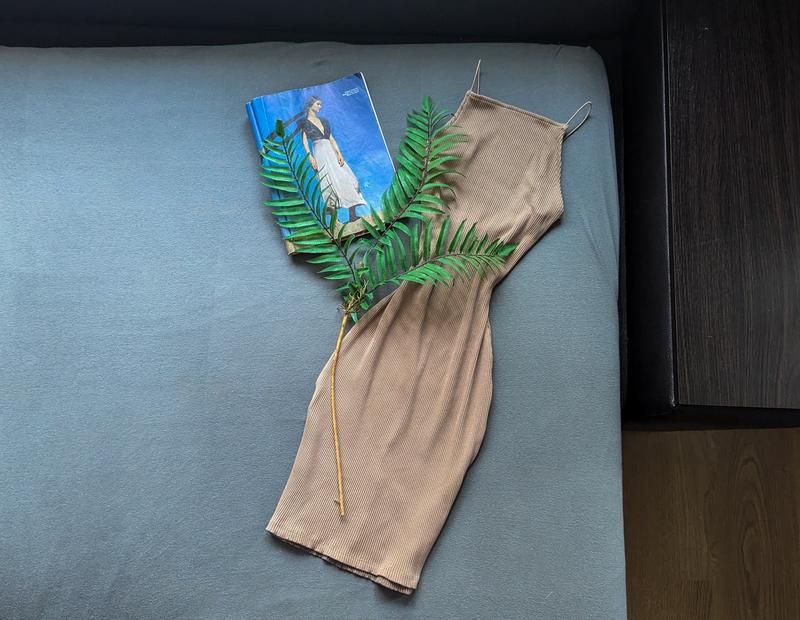 Без дефектов Хорошего песочного цвета Ткань хорошо тянется Сзади красивый вырез на спинке Длина 83 см Пог 30 см + тянется Пот 25 см + тягнеться Пос 31 см + тянется Доставка : Укрпошта(повна оплата на карту)/Нова пошта. Резерв только на оплату - 12 часов. Оплата 100% на карту. Накладным платежом отправляю с предоплатой в размере 150 грн, доставка в таком случае будет только через Новую почту. Фото на тілі не роблю. Снизитель, возврат, обмен - нет.