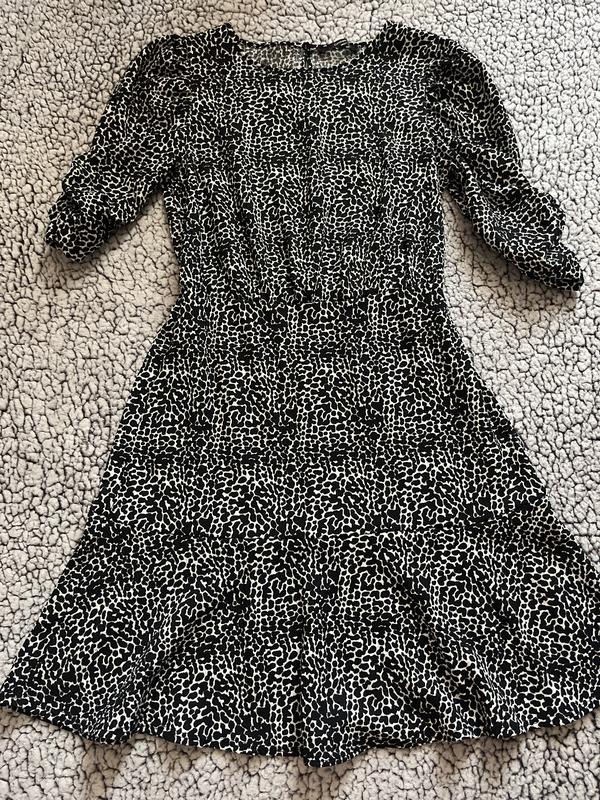 Платье в размере М 10(38) В отличном состоянии Фактурна тканина Поб 50 Талия 35 (резинка) Пог 45/47 В ширину тканина тягнеться Длина 90 см от плеча