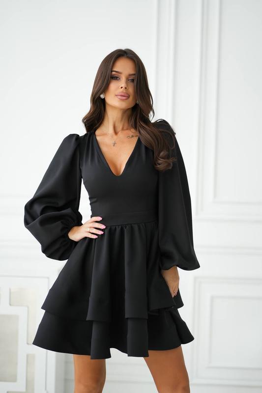 🍀🍀🍀 НОВИНКА 🍀🍀🍀 Платье с двойной юбкой и объемными рукавами Модель 7534 Размеры: S (42), M (44), L (46) Тканина: костюмка Длина: 88 см Рукава: 65 см Цвета: черный, молочный _______________________ Невероятное платье приталенного силуэта с двойной юбкой. Верх платья с глубоким V-образным вырезом и длинными пышными рукавами. Манжет на резинке. Объемная юбка обработана кринолином, что делает ее более загадочной. Талия подчеркнута вшитым поясом, подчеркивающим форму и придающим фигуре стройности. Платье выглядит женственно и элегантно, подходит для торжественных событий или романтических встреч.