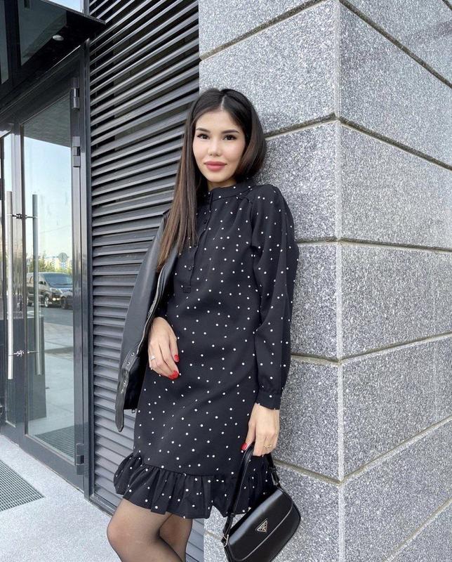 🚨🚨🚨Перед оформлением заказ уточните, пожалуйста, есть ли в наличии нужный вам цвет и размер🚨🚨🚨 Сукня 🥰 Мод.205 Размеры: 42-44, 46-48 Тканина: софт люкс Цвет: горошек черно-белый Описание: Платье свободного кроя, воротник со стойкой, застежка на планку с пуговицами, рукав реглан на манжете, по низу мягкий рюш. Это будет твоя любимая вещь на все случаи жизни💔