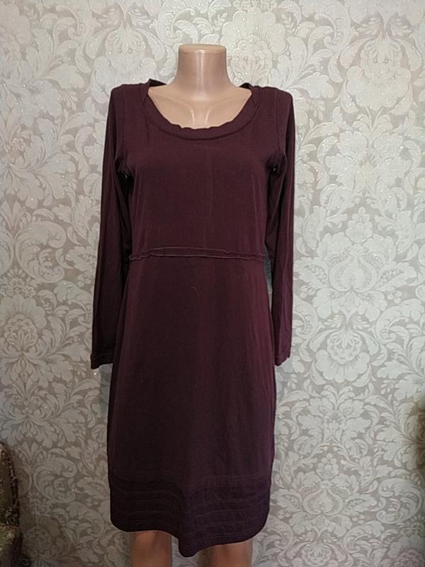 сукня бордо з котоного трикотажу, трошки завищена талія, крій практично ровний, цікаве виконання швів. бренд Sandwich. розмір: довжина 94,5 см, плече/рукав 3,5/59 см, висота лінії талії 37 см