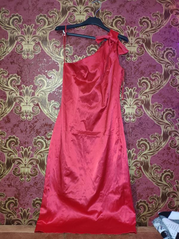 Шикарное красное коктейльное платье на одно плечо.