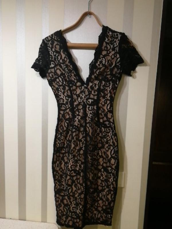 Вечернее приталенное платье размер S. Подкладка телесная сверху кружевная чёрная ткань. Сзади молния. По спине, плечах и в зоне декольте идёт прорезиненная лента.
