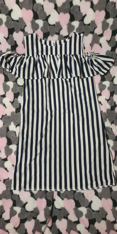 Белое платье в темно-синюю полоску С открытыми плечами Размер 46