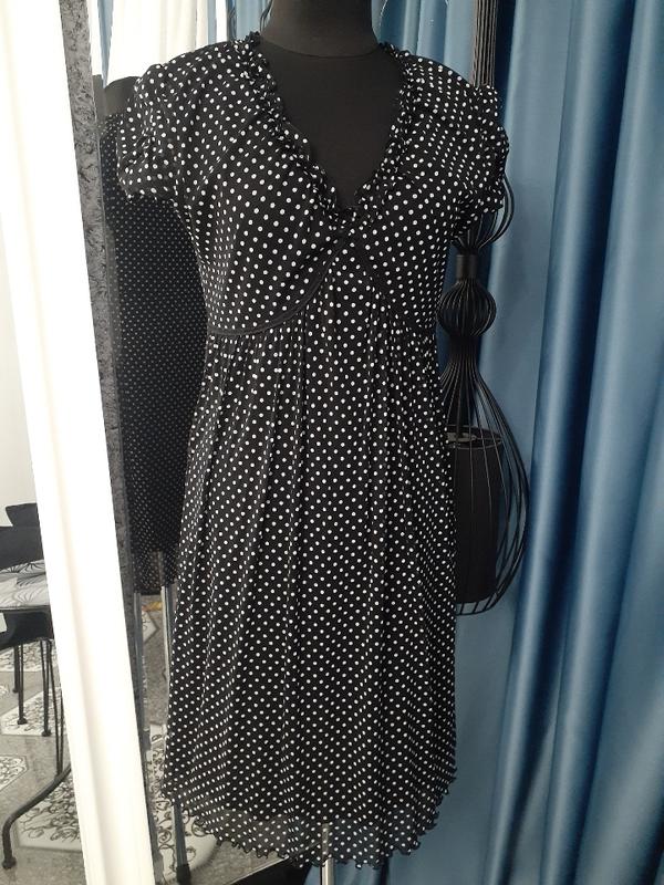 Ніжна гарна сукня. Фірмова. Сідає ідеально. Верх з щільної м'якої сіточки. По всій довжині має підклад. За рахунок цього прозорість мінімальна. Форма крою трапецевидна. Річ практична, універсальна і не вибаглива. На розмір M. Ширина в грудях 48см Довжина 97см