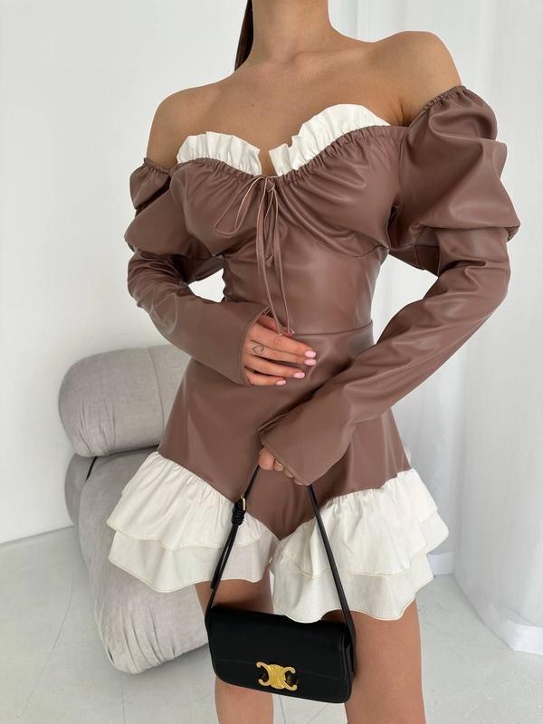 BESTSELLER наша нова провокаційна і неймовірно круто сидяча по фігурі сукня з еко шкіри, забезпечить вам кохання з першої примірки На спинці стрічка, рукава з резинкою, тому можна регулювати. Рукава з розрізом, а з переду шнурочок для регулювання декольте ▪️Модель 494 ▪️Розмір: 40-42, 42-44, 44-46 ▪️Колір: карамель ▪️Тканина: еко шкіра + плотний Коттон Ціна 820 грн✅