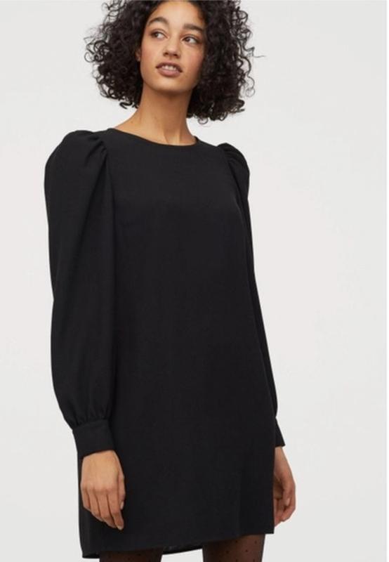 Черное классическое платье прямого кроя. Размер xs. Длина 85 см, Пог 44-45 см, рукав с элегантной сборкой 62 см, бедра 48-49 см.