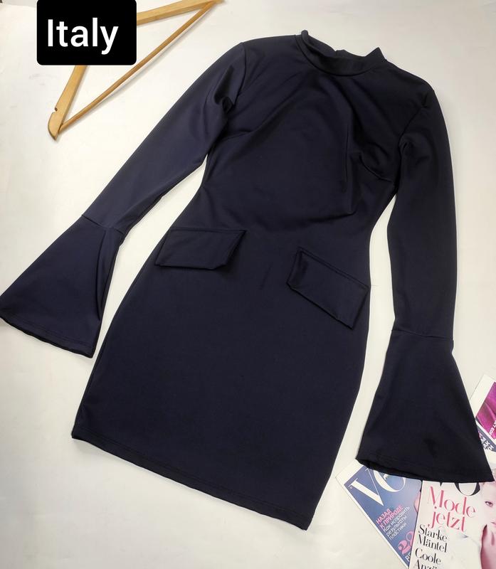 Платье женское мини футляр синего цвета с длинными рукавами от бренда italy s