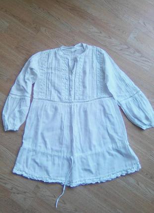 Елегантне коротке плаття-туніка ніжного білого кольору. Б/у у відмінному стані. Розмір M. Довжина 81,5 см ПОГ 50см ПІТ 57см ПО низу туніки 76см 54см Довжина рукава Склад: 100% бавовна. Код Б2006