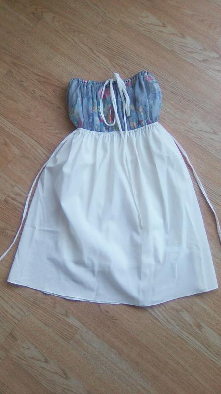 Елегантна ніжна туніка білого кольору, верх в квітковий принт. Є підкладка. Можна носити як з зав'язками на шиї, так і без. Виробництво Таїланд. Розмір M. Довжина 63 см ПОГ 28-57см Довжина від грудей 47см ПІТ 25-55см Склад: штучний шовк, підкладка-бавовна. Код Н2004