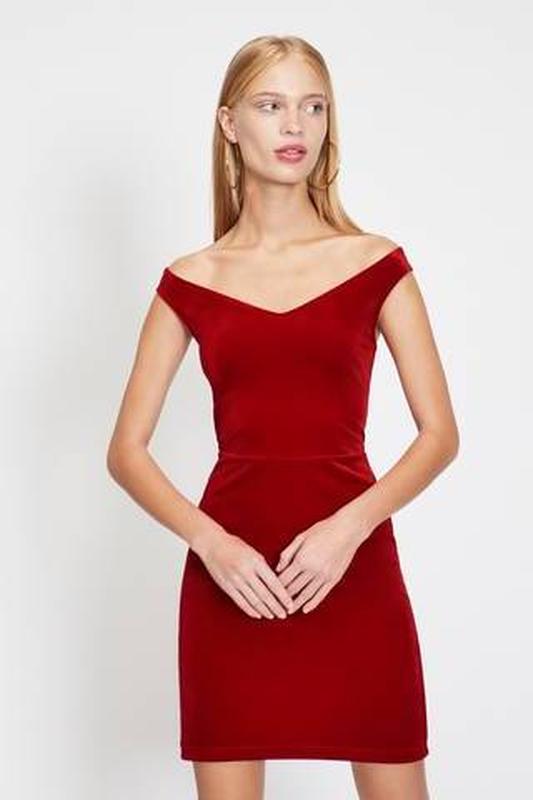 Брендовое бархатное, велюровое алое платье мини "miss selfridge". размер uk10/eur38.