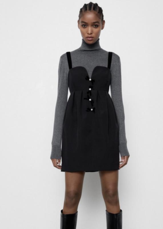 Сукня Zara, дуже ефектна , шлейки та бантики із бархатної тканини . В ідеальному стані. Заміри на фото та додаю тут: Довжина 77см Пог 37 Пот 49 Поб 50