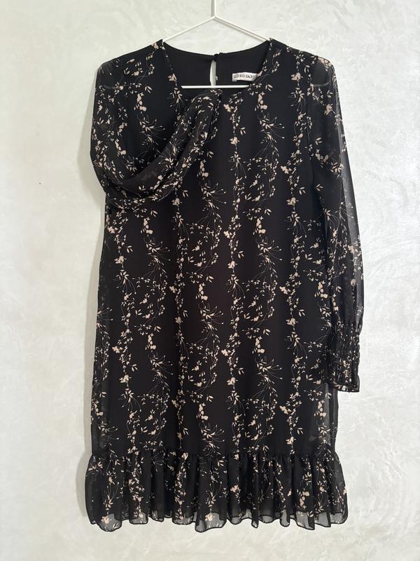 Великолепная мини-платье в цветочный принт. Размер S. Внизу рукавчики на резинке, также идет пояс.