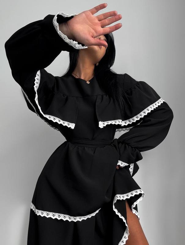 Сукня, фото реал✅ ⠀ ▫️Размеры: 42-46 универсал( грудь до 90см, талия 60-70см, бедра до 100см) ▫️Тканина: костюмка люкс ▫️Цвета: черный ⠀ Платье балахон с кружевом и отдельной баской. Подчеркнет твою неповторимость и хрупкость баской, роскошная и богатая. ⠀ Модель 112 ‼️Безопасной оплаты нет, накладной платеж с подпиской!!️ Отправка 2-4дны Есть обмен размера