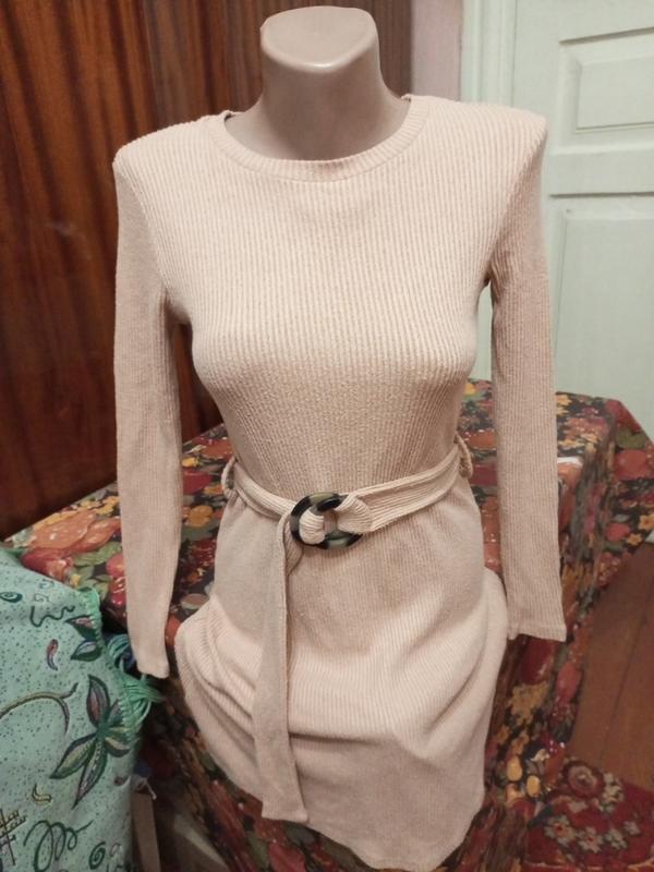 очень красивое пудровое платье. Ткань теплое, приятное к телу и хорошо тянется. Размер 2хс, хс, с. опис состояние отлочный длина 80 рукав 54 ширина комди 37 ширина бедер 45