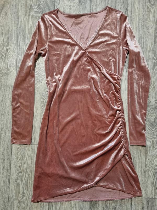Бархатное платье короткое, с красивым низом-разрезом, драпировкой