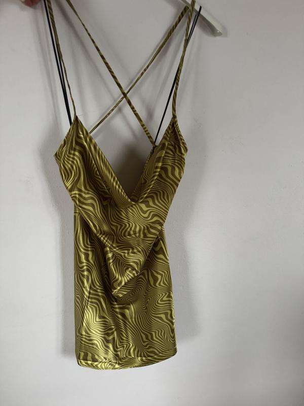 Коротка сукня з відкритою спиною зеленого кольору, атласна, мʼяка. Розмір М