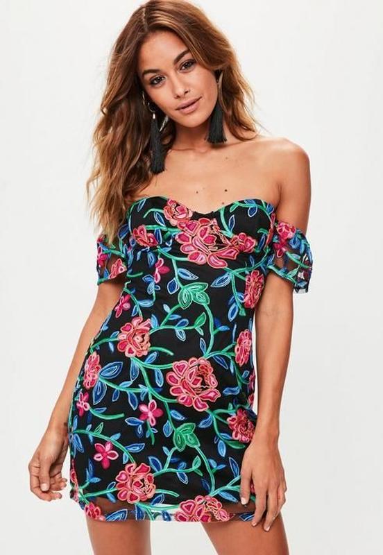 Платье мини с цветочной вышивкой от missguided