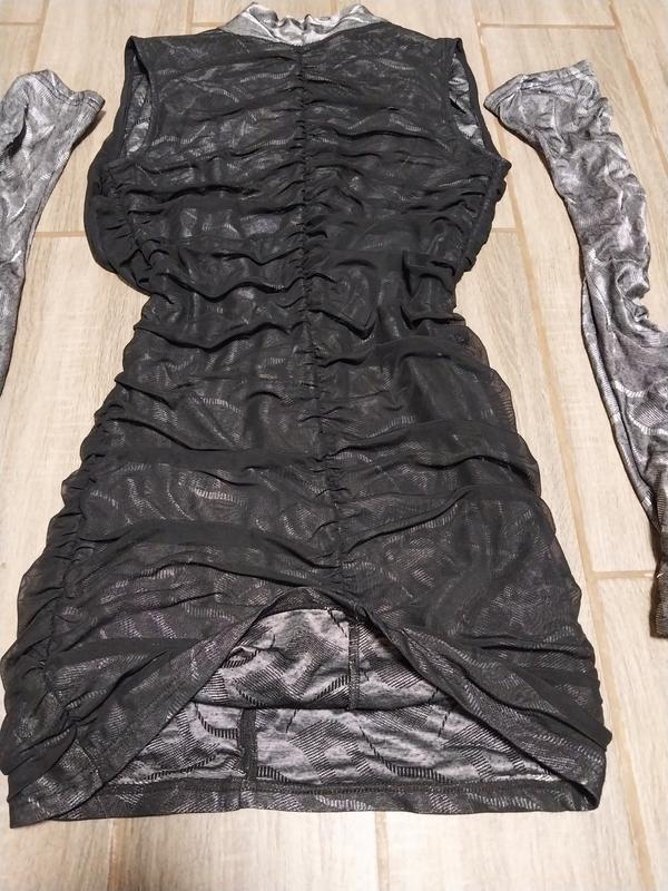 Очень красивое по фигуре, тянется хорошо, сзади на молнии, можно с рукавами надеть или без них