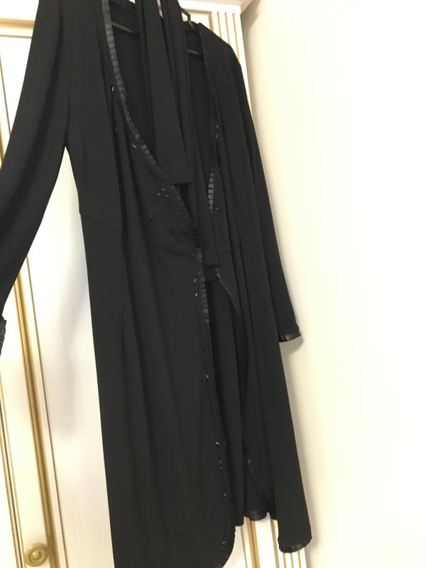 Платье на запах трикотажная, украшено черным бисером и атласным кружевом в красивом состоянии