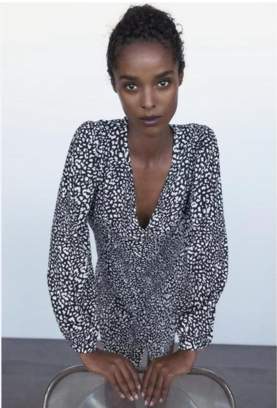 Платье фирмы Zara черно-белое в животный принт размера М.Очень яркое и сексуальное. Красиво смотрится на фигуре и подчеркивает ее.V-образный вырез красиво подчеркнет зону декольте.По всей длине на пуговицах.Приталеная.До низа трапецией.Ткань приятная к телу 100% вискоза.Пойдёт под дорогой лук.Довжина 80 см, ширина в плечах 36 см, ширина в груди 48 см,ширина в талии 80 см, по низу расширена.Длина рукава от плеча 58 см.