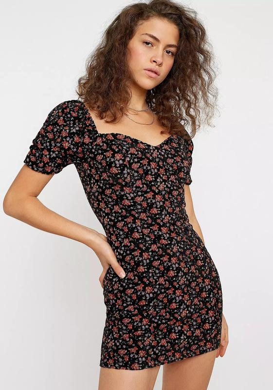 Платье мини жаккард с вышивкой в цветочный принт вырез бюстье