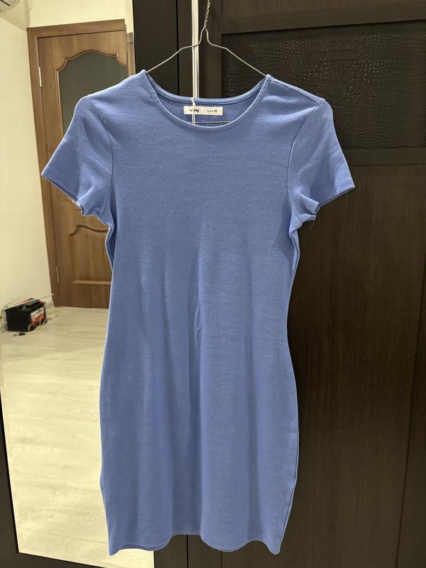Голубое платье в обтяг с коротким рукавом, новое, с биркой и ценником
