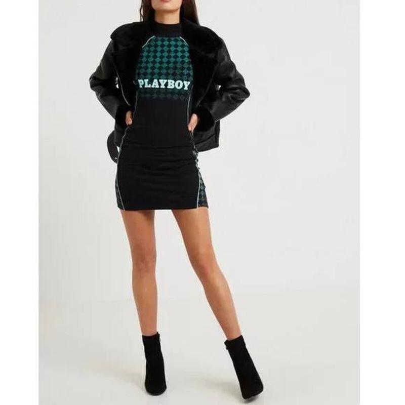 Силуэтное черное платье с надписью Playboy. Застегивается на замочек сзади. Состав 50% полиестер, 45% хлопок, 5% эластан Бренд коллаборация Missguided & Playboy Размер UK 12 M Цена 295 грн