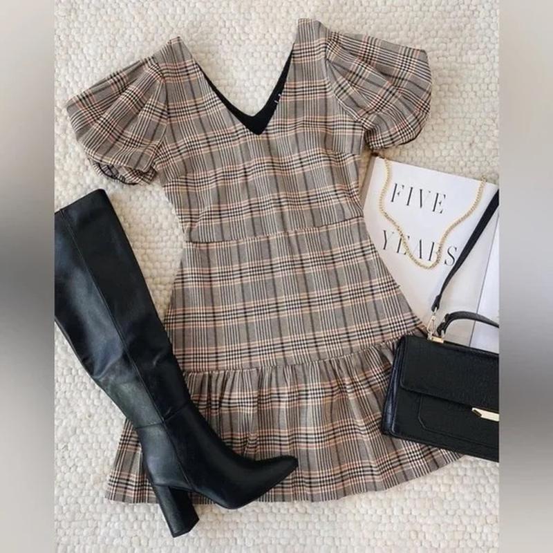 Платье в клетку с объемными рукавами для осени/зимы от Lulu’s