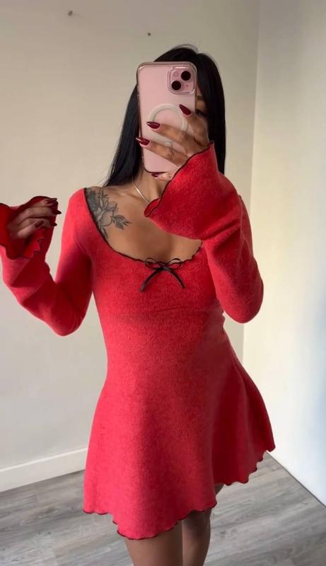 Романтичное платье декорировано нежным бантиком, оно влюбляет в себя с первого взгляда 🫶🏻 Сукня Мод: 342бре Размер: 42-44,46-48 Тканина: Ангора рубчик Цвета: черный, беж, красный
