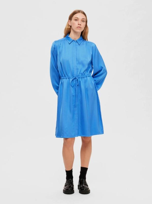 Сукня Selected Femme -Гудзики спереди, скрытые планкой. -Манжети на ґудзиках. -Шнурок на талии. -Собранный эффект на плечах, рукавах, спине. Материал: 50% вискоза LENZINGTM ECOVEROTM, 50% вискоза.